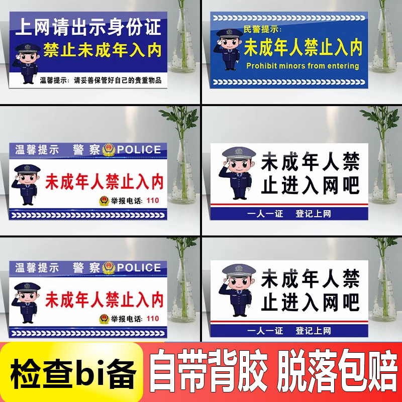 未成年人禁止入内警示牌棋牌室网吧酒吧未满18岁禁止进入提示牌门