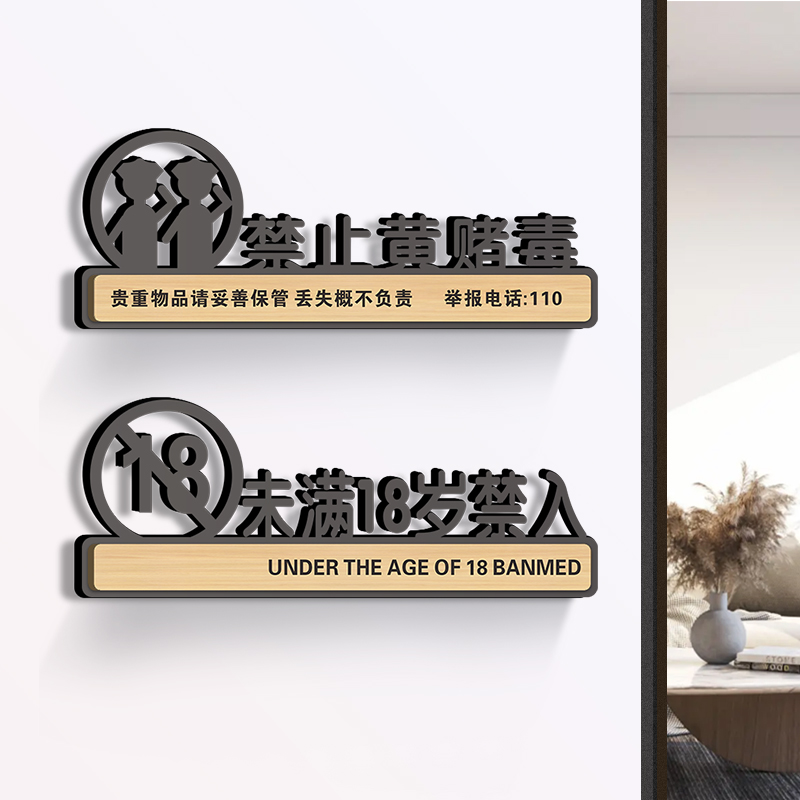 禁止黄赌毒标识牌未满18岁禁入亚克力温馨提示牌酒吧网吧未成年人