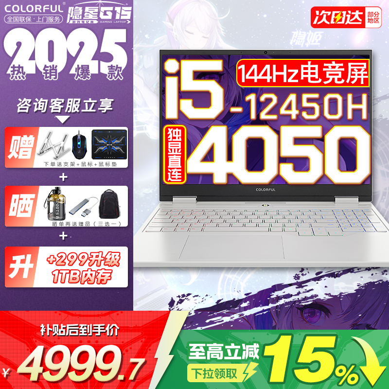 【全国可用换新补贴】七彩虹隐星G15游戏本 英特尔酷睿i5-12
