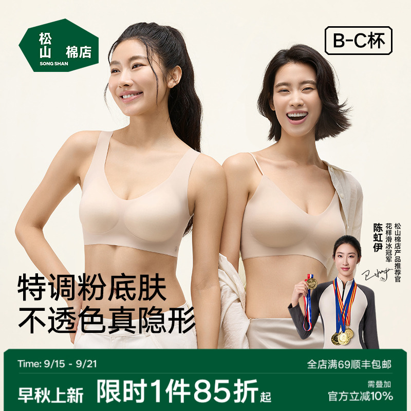 松山棉店小薄荷宽肩带粉底液隐形透气无痕文胸罩聚拢美背心内衣女