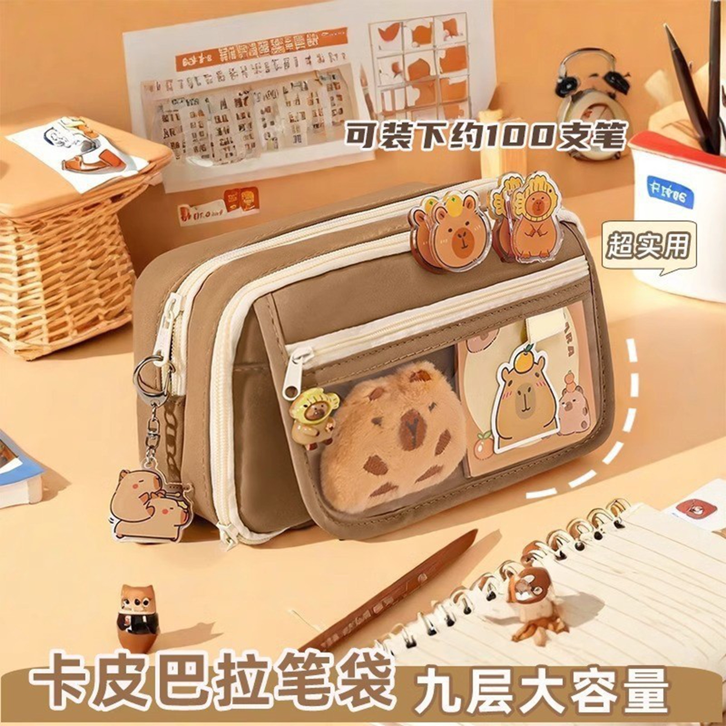 新款九层大容量透明笔袋女孩可爱卡皮巴拉初中小学生高中生文具袋