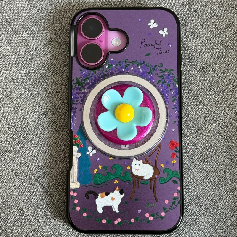 泡泡骚小兰花通用漂浮记忆磁吸气囊支架防摔手机壳适用苹果iPhon