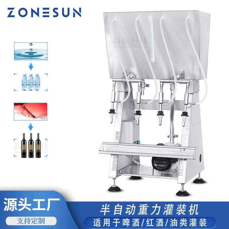 ZONESUN 半自动重力灌装机 减少气泡自动上料 红酒啤酒米酒