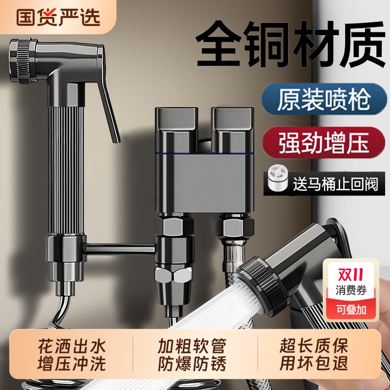 高压马桶冲洗喷枪伴侣全铜角阀一进二出家用厕所妇洗喷头增压水管