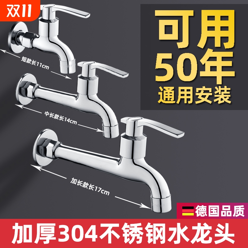 水龙头家用加长单冷304不锈钢入墙式拖把池4分洗衣机龙头阳台专用