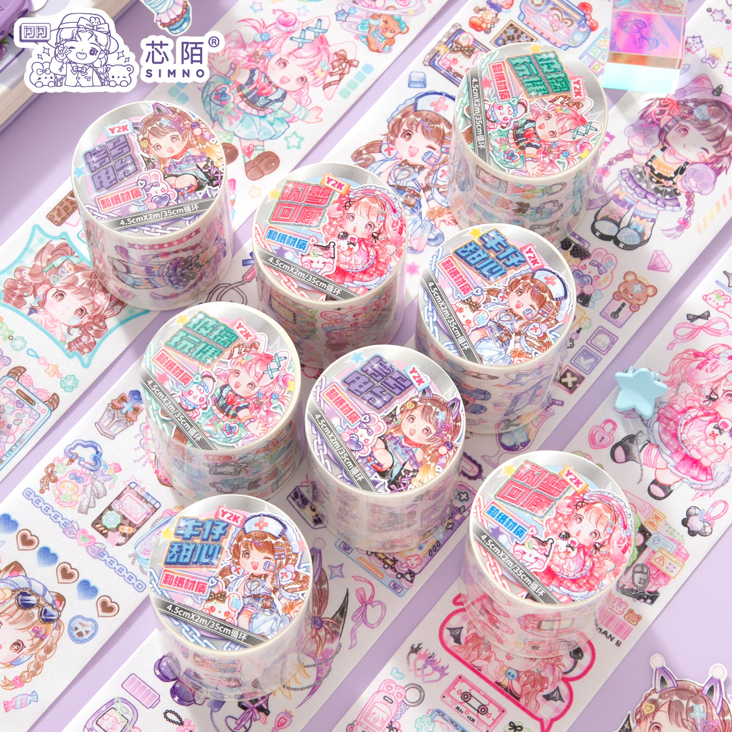 芯陌新款手帐胶带手账贴纸可爱古风国风卡通人物全套整卷套装花边分装