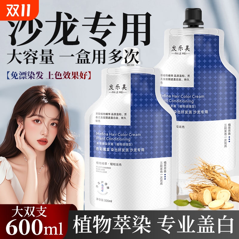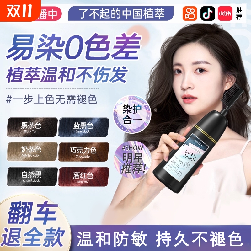 何首乌一洗黑染发剂纯植物天然无刺激染发膏黑茶色不沾头皮泡泡染