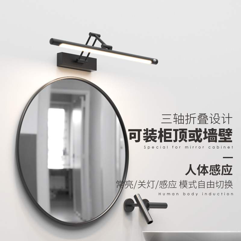 人体感应镜前灯镜子灯卫生间柜顶安装镜柜专用可折叠浴室镜柜灯