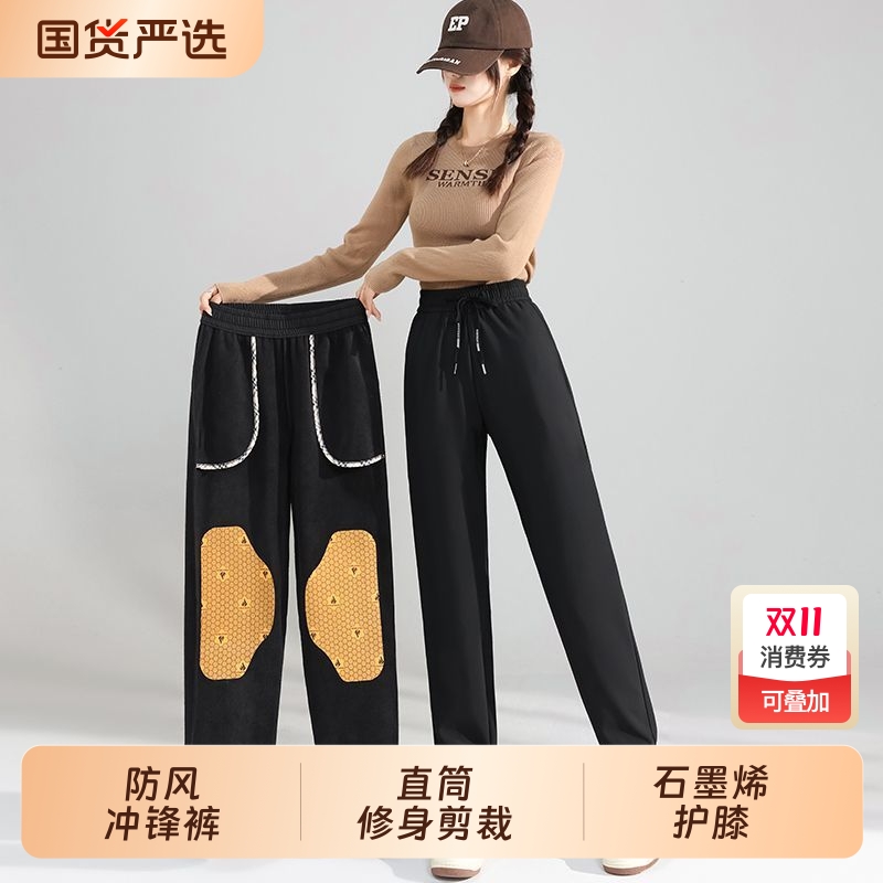 冲锋裤软壳女秋冬石墨烯护膝户外防风保暖加绒束脚冬季休闲运动裤