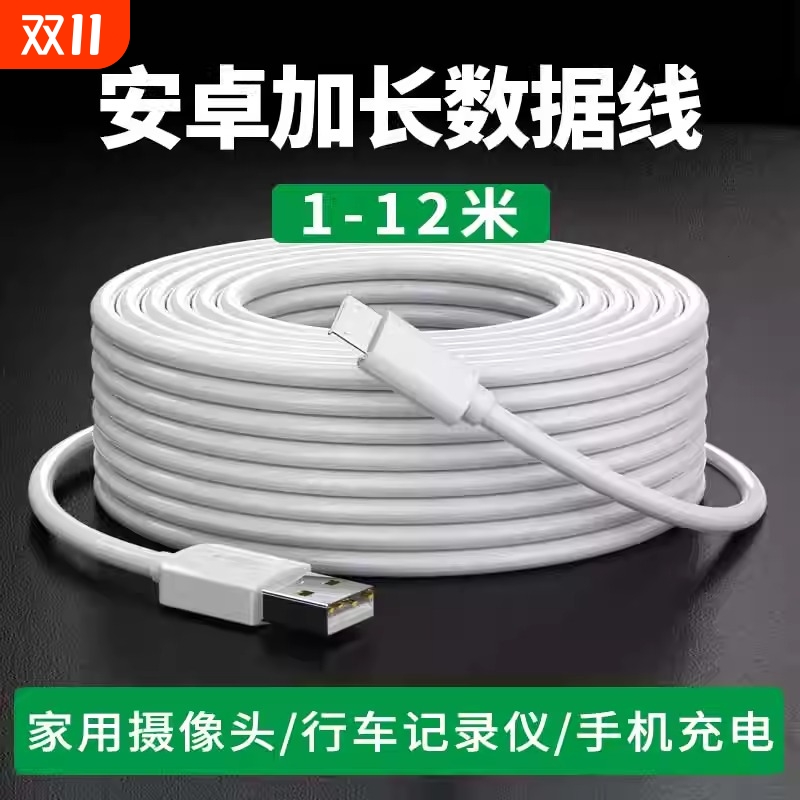 弯头Type-c连接线micro usb加长行车记录仪3.5米m