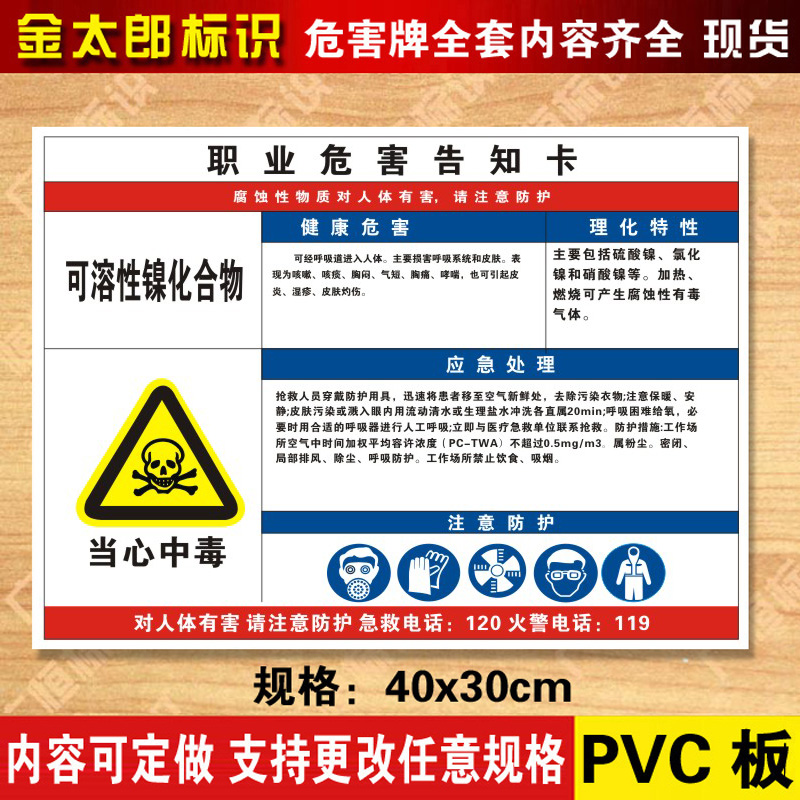 可溶性镍化合物当心中毒职业病危害告知牌警示标志标识告知卡定做