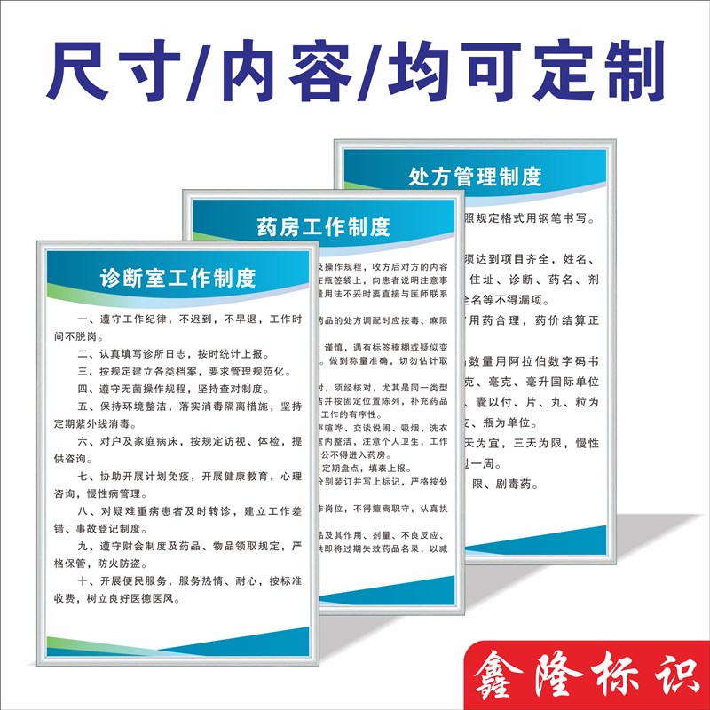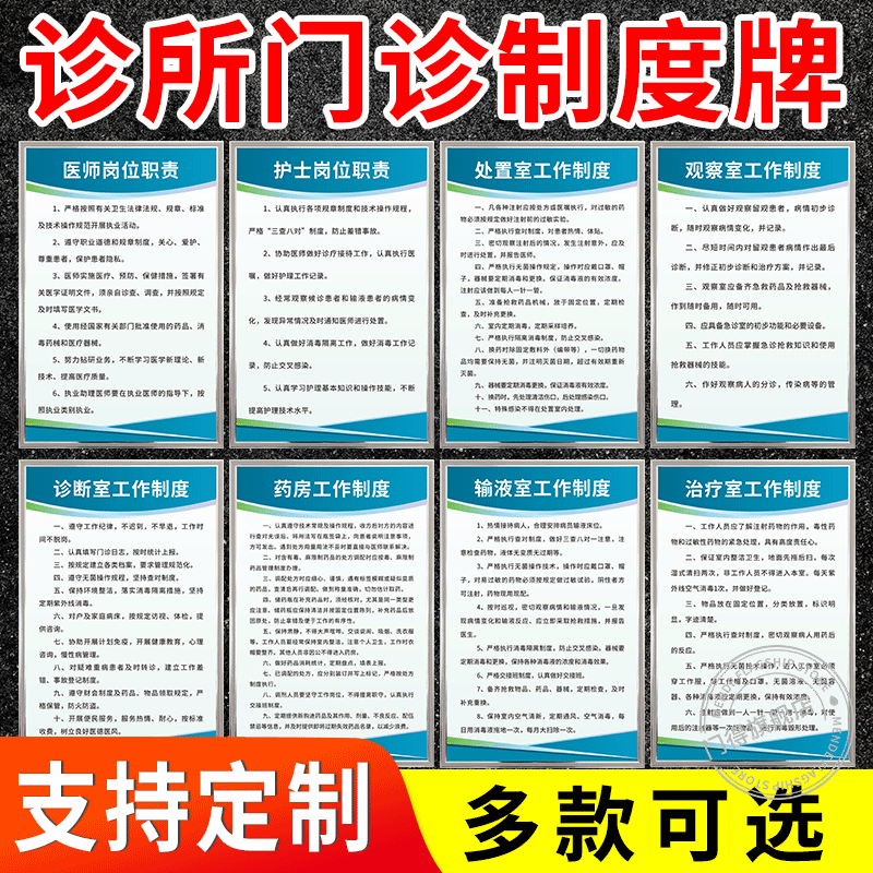 热销医院诊所卫生室科室门诊规章制度标识牌护士医师工作职责贴纸