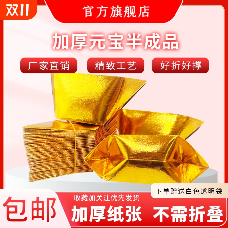 半成品元宝1000个装手工折纸切角金银元宝免折叠金纸银纸包邮