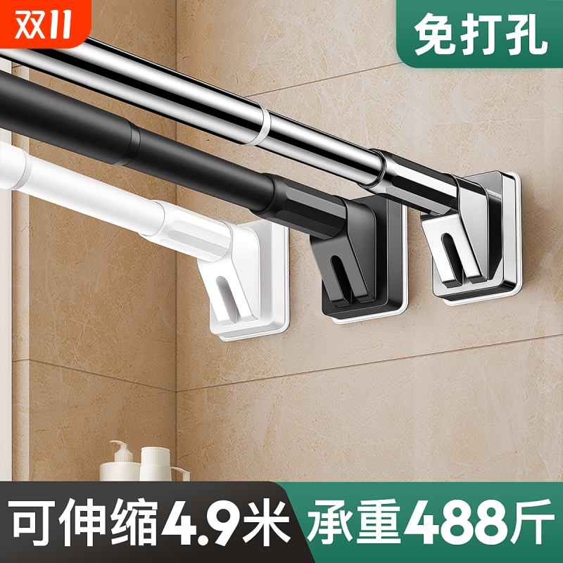 阳台固定式免打孔伸缩晾衣杆单一整根衣柜窗帘杆支撑杆不锈钢侧装