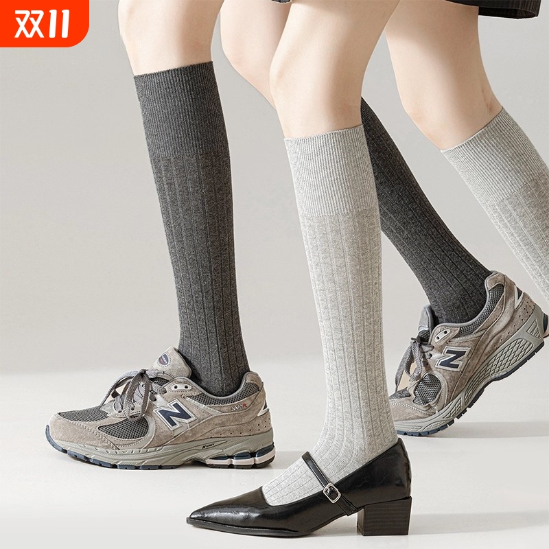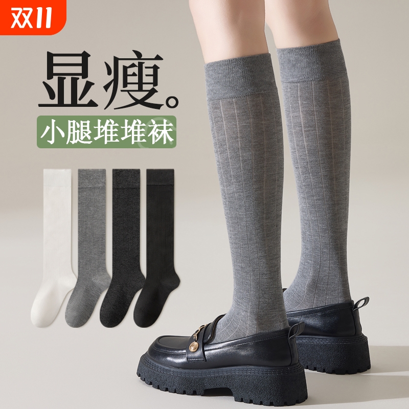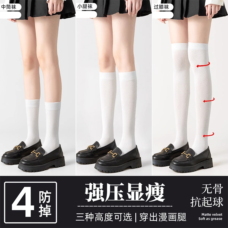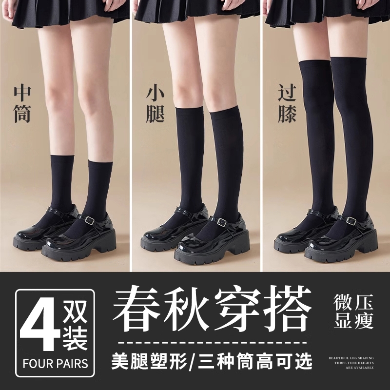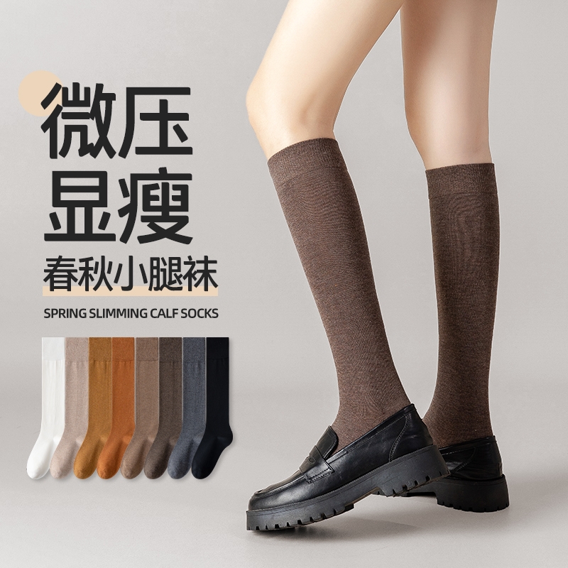 有内小腿棉袜子女压力显瘦秋季新款抗菌女生jk黑色配乐福鞋长袜子