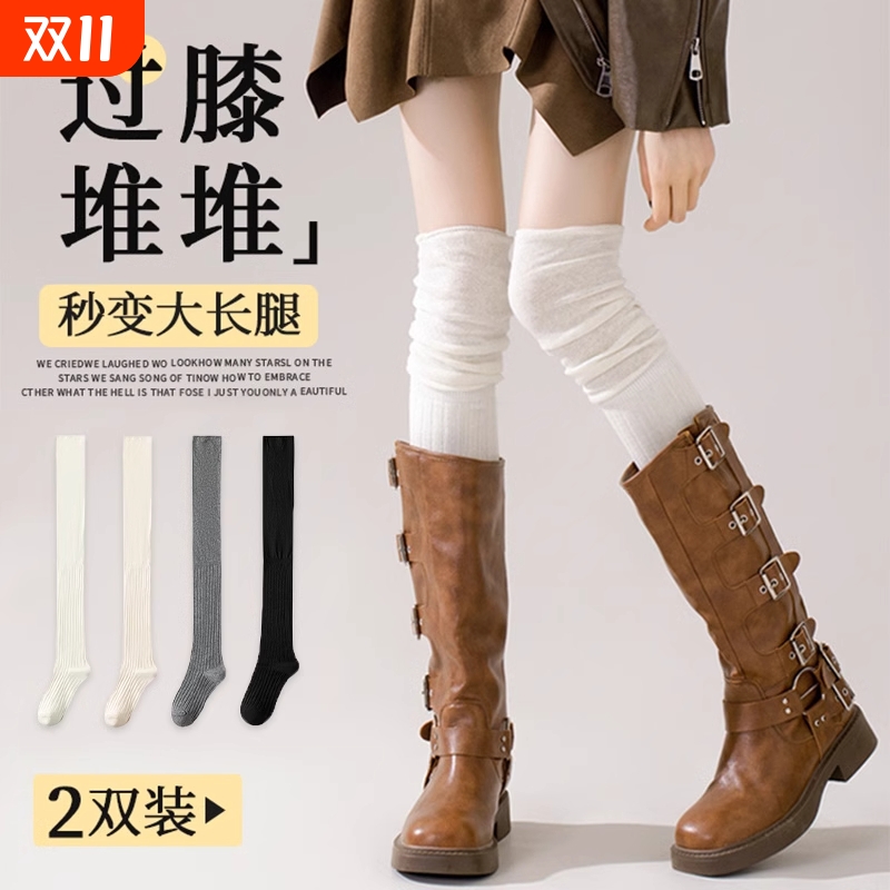 过膝纯棉堆堆袜美腿显瘦配长靴