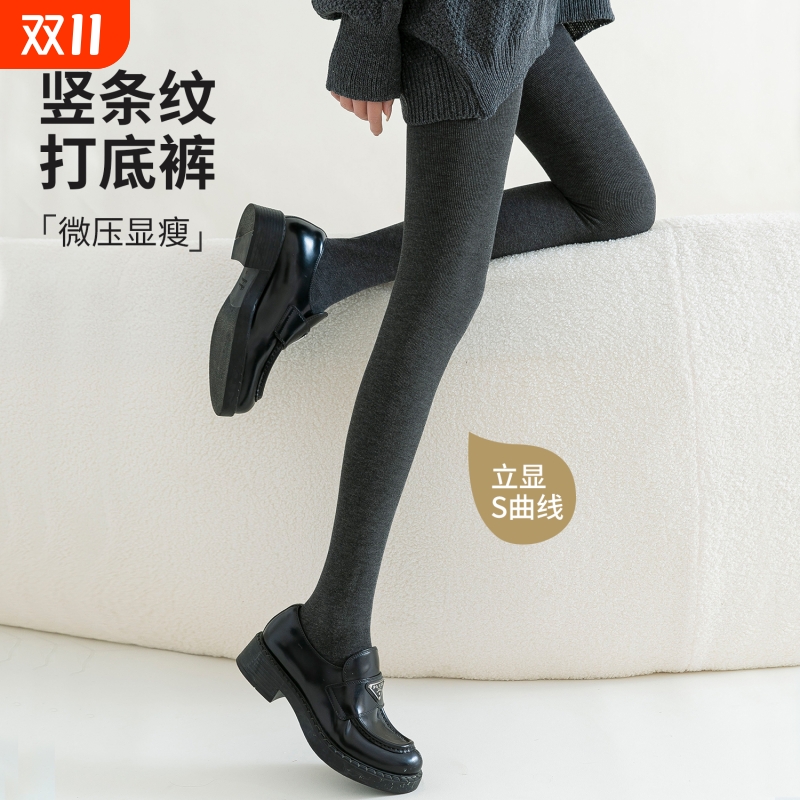 打底裤女春秋薄款外穿灰色竖条连裤袜秋冬加绒格雷系黑色压力显瘦