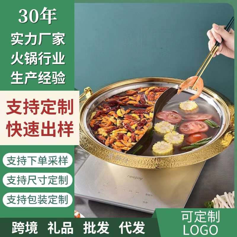 304不锈钢火锅盆商用电磁炉专用鸳鸯锅火锅家用三层钢加厚二味锅