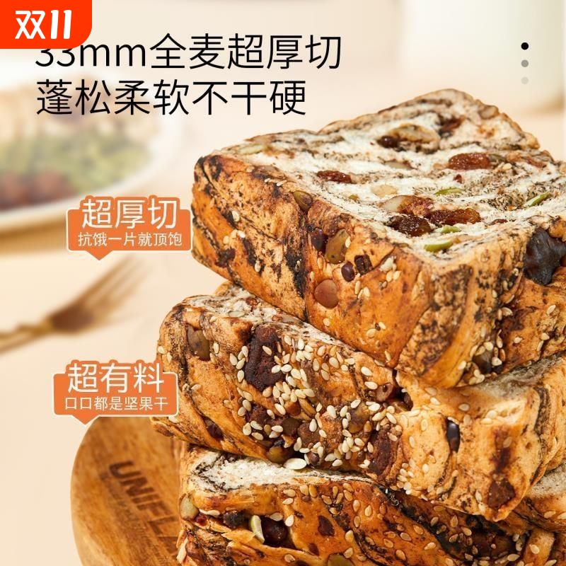 全麦坚果厚切吐司面包千层果仁切片早餐美味健康粗粮充饥