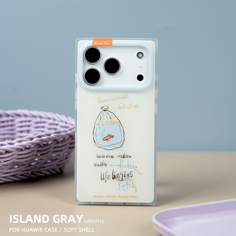 灰岛塑料袋金鱼方形手机壳