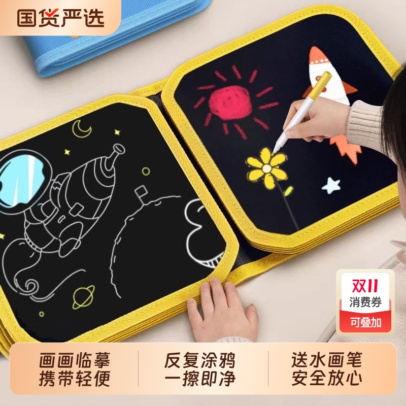 画画板儿童涂色宝宝反复涂鸦绘画本不脏手家用便携小黑板可擦玩具