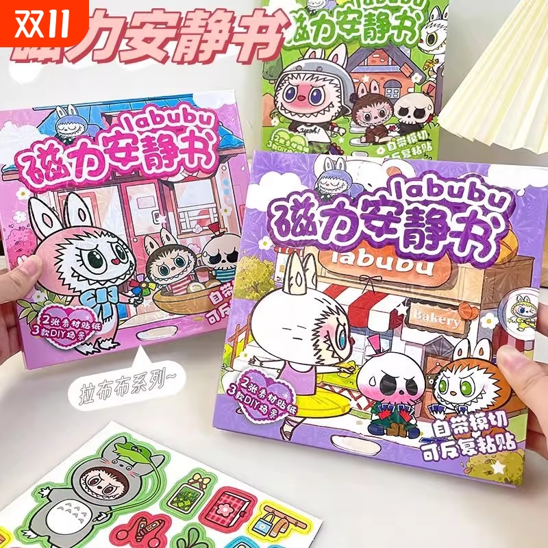 拉布布磁力安静书3到6岁反复粘贴贴纸专注力训练益智卡通仿真玩具