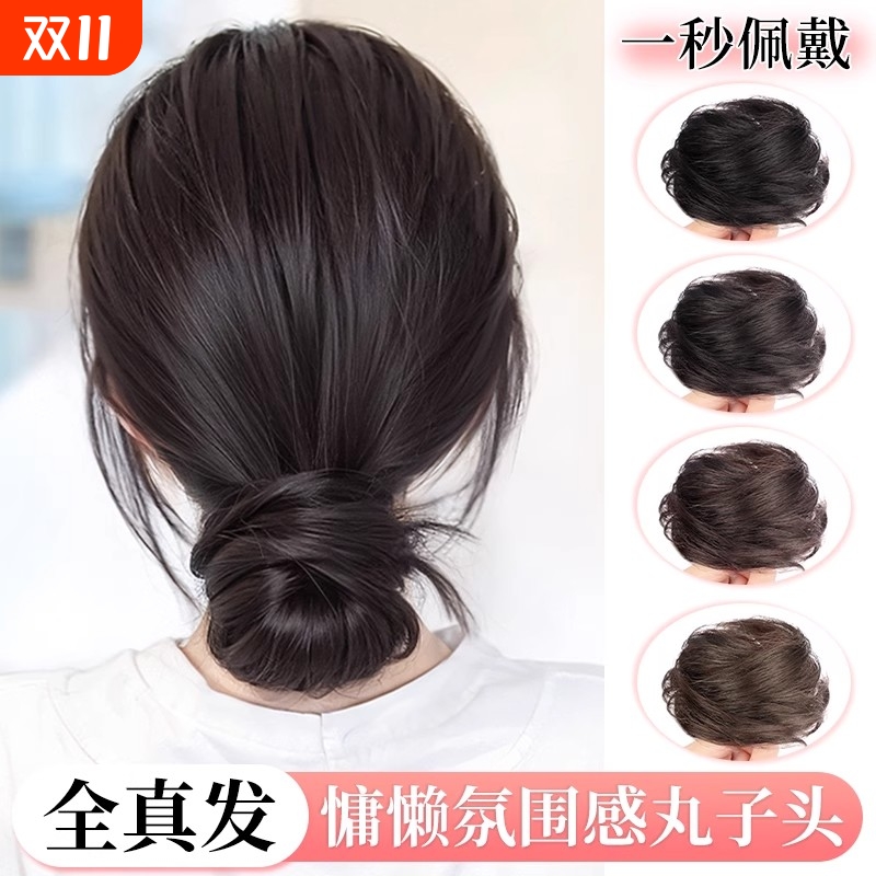 真发低丸子头假发发圈盘发发包古风假发包花苞头全真人发蓬松神器