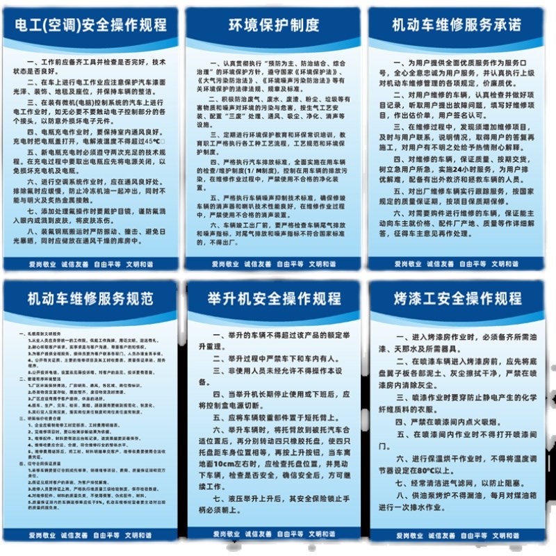 速发汽车维修管理制度汽修工安全操作规章设备管理及维护制度牌