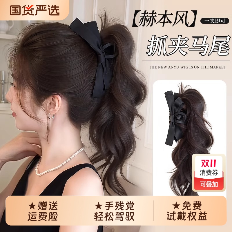 马尾假发女自然仿真蝴蝶结