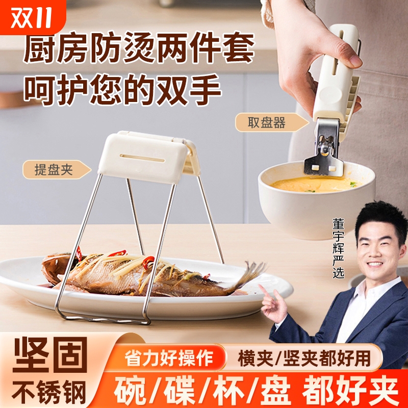 防烫套装防烫夹取碗夹防烫手套提盘器隔热器不锈钢防滑盘子神器