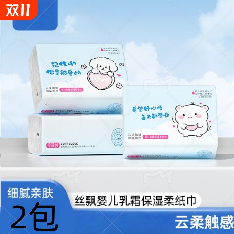 便携装云柔保湿新生婴儿可用乳霜纸巾面巾纸