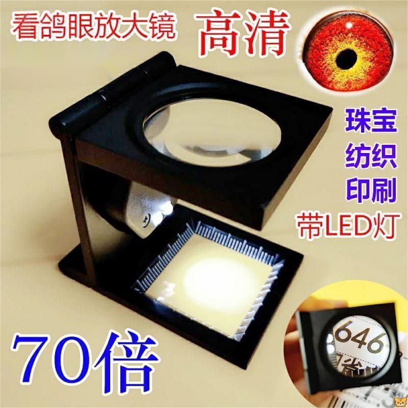 60倍70倍80倍放大镜带LED灯折叠可携式金属专用看赛鸽眼专用
