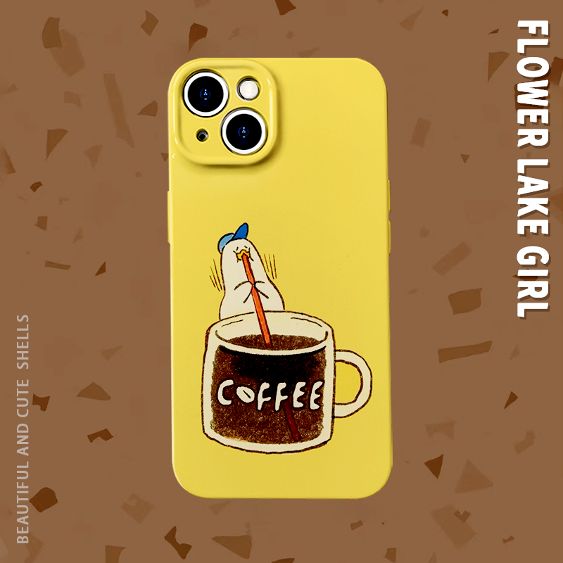咖啡续命~可爱卡通鸭鸭适用iPhone16/15pro手机壳华为
