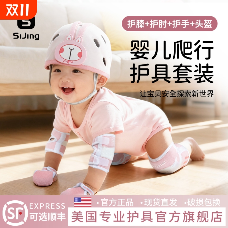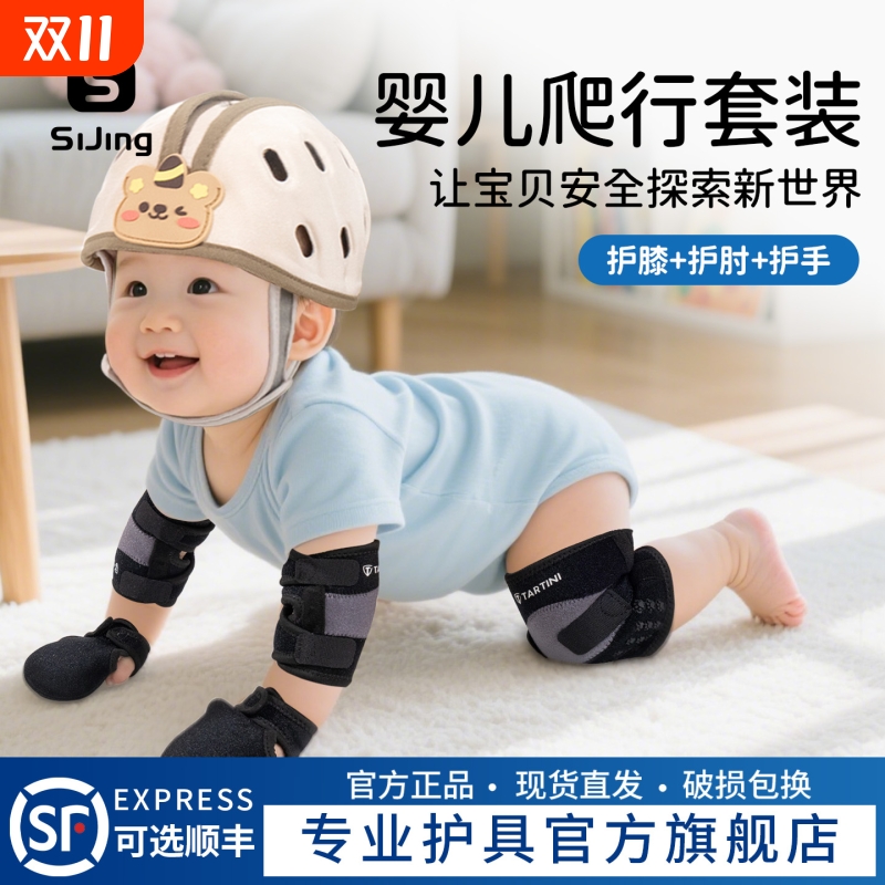 婴儿爬行护膝护肘装备宝宝学步防摔可调节膝盖透气头盔保护护具