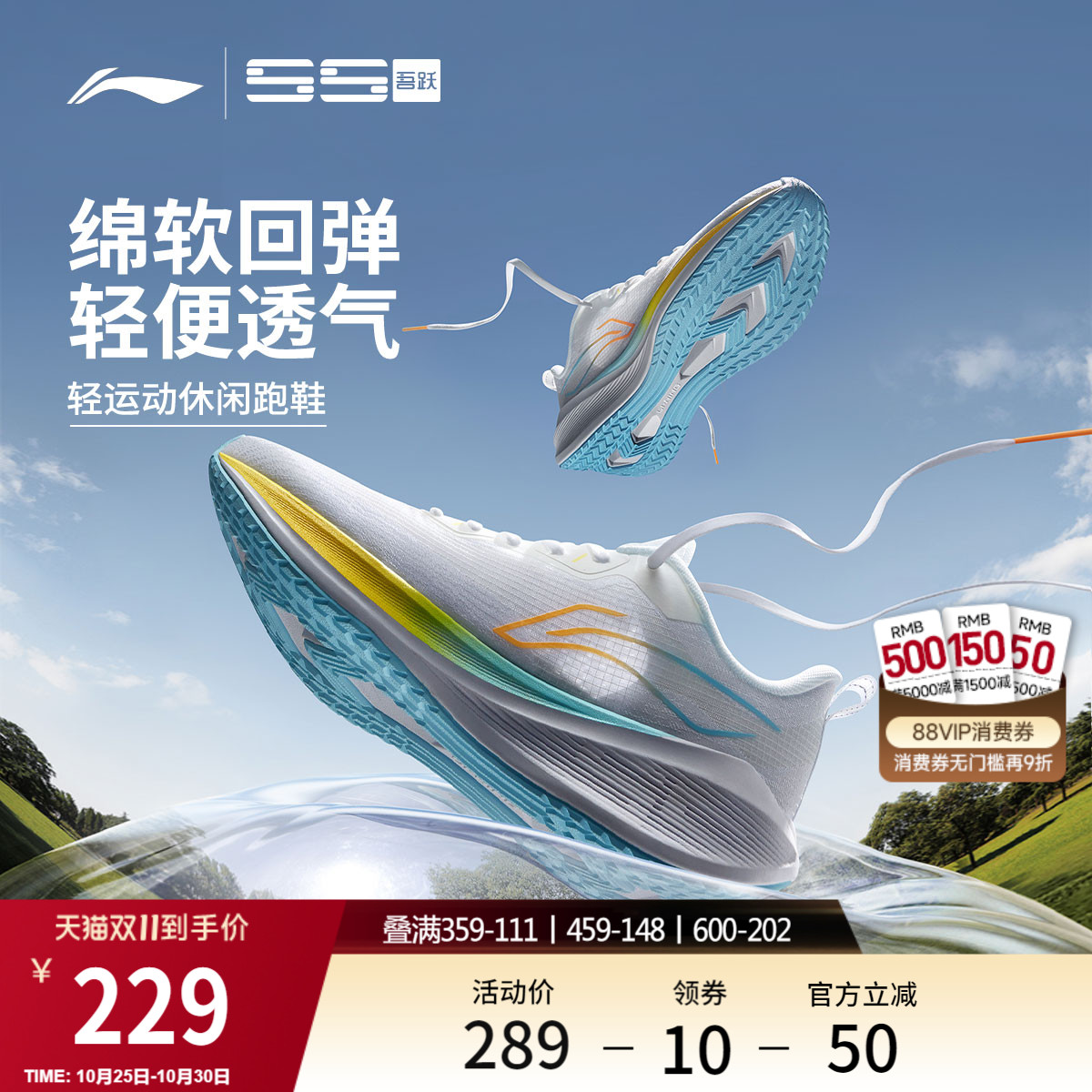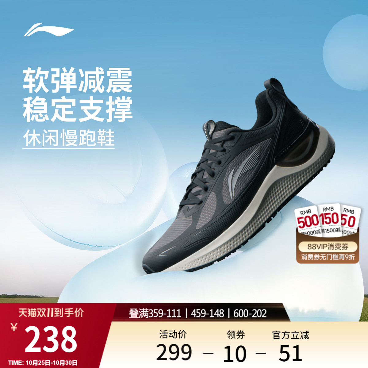 李宁吾跃男款轻便透气跑步鞋