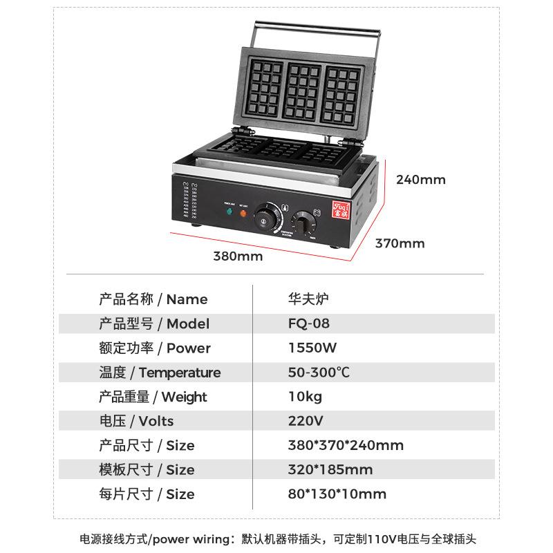 电商用热华759夫器炉 电热格仔饼华夫饼格机 方十片华夫饼机器