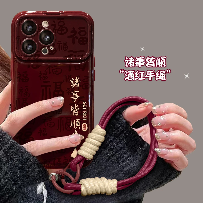 酒红色诸事皆顺适用苹果16手机壳iphone15/14新款12/