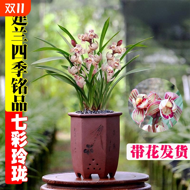 建兰七彩玲珑名贵四季兰花苗带花苞室内好养花卉绿植盆栽品种精品