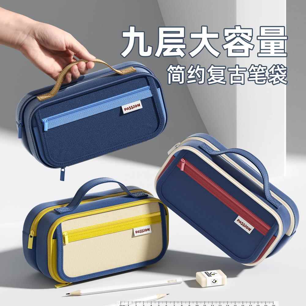 2025新款笔袋男孩简约文具盒男生高颜值复古笔袋大容量铅笔盒超火