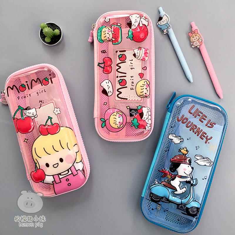 自嘲熊双层透明笔袋ins风可爱高颜值大容量防水pvc文具学生收纳
