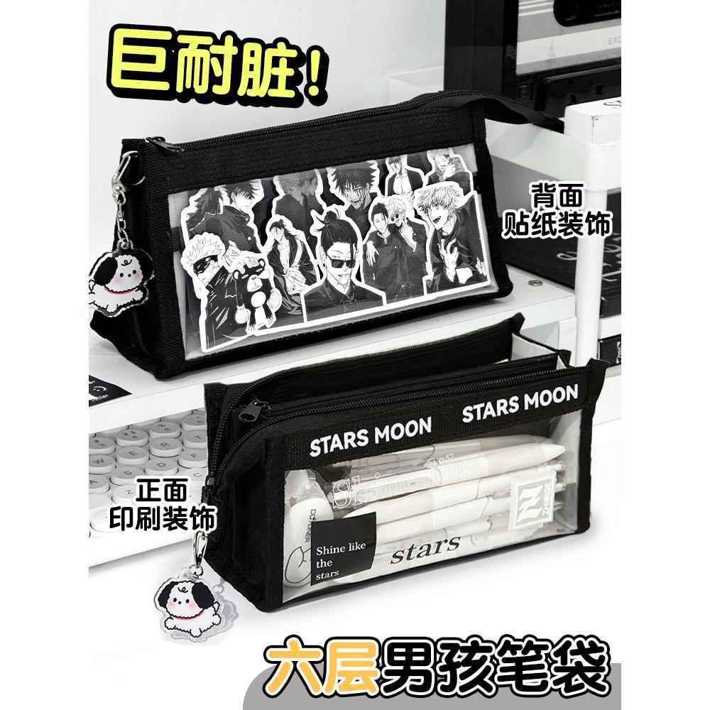 耐脏!夏天透明笔袋男孩2024新款大容量初中生高中2025黑色铅