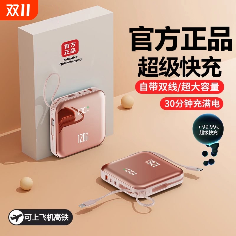 充电宝20000毫安【新国标3C认证品质严选】高颜值自带线容量快
