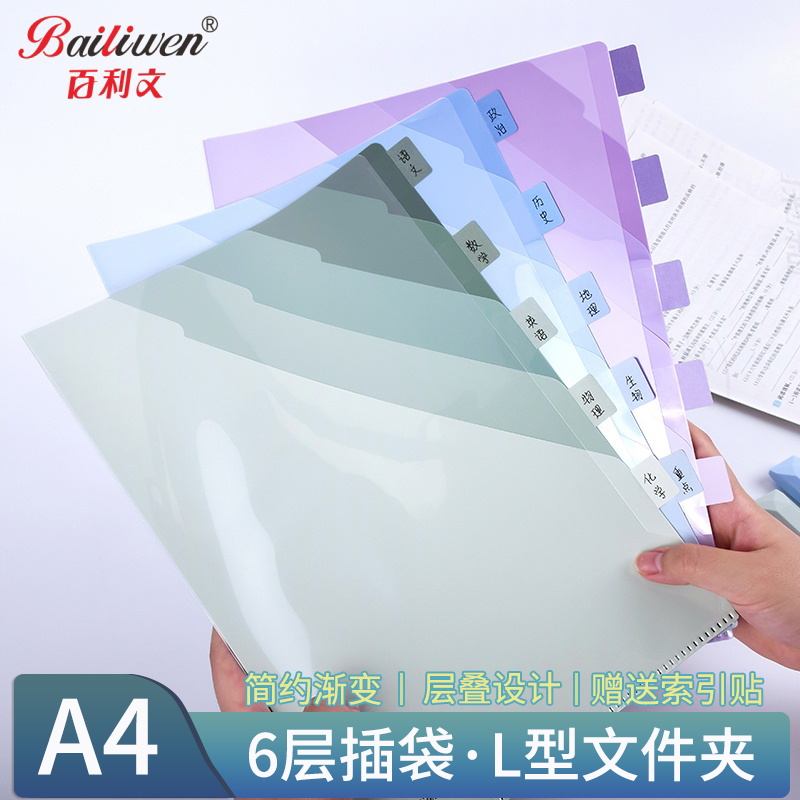 百利文E3316渐变多层A4文件夹6层插袋分类文件袋学生专用L型