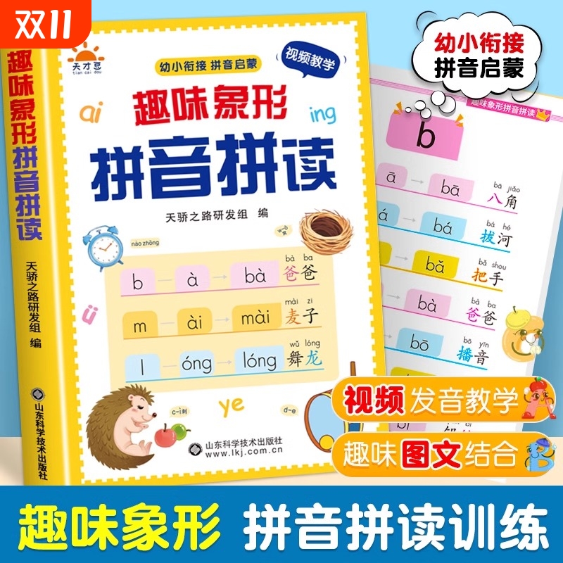趣味象形拼音拼读训练幼儿园早教启蒙书幼小衔接专项训练一年级儿童趣