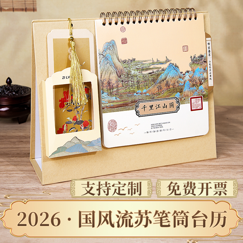 台历2026年新款国潮笔筒流苏