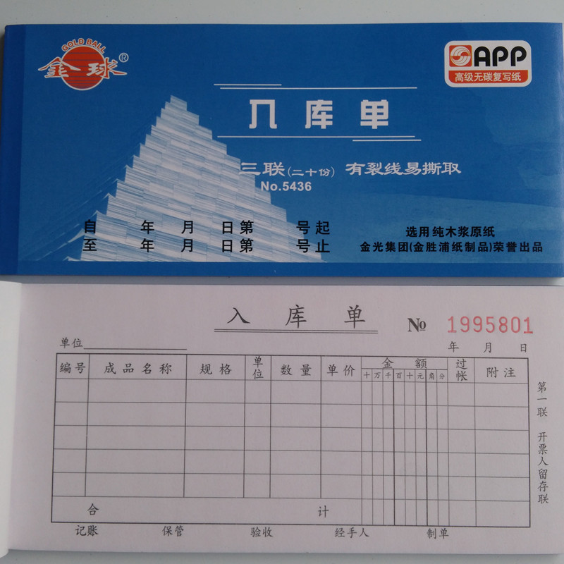金球三联易撕取纯木浆入库单