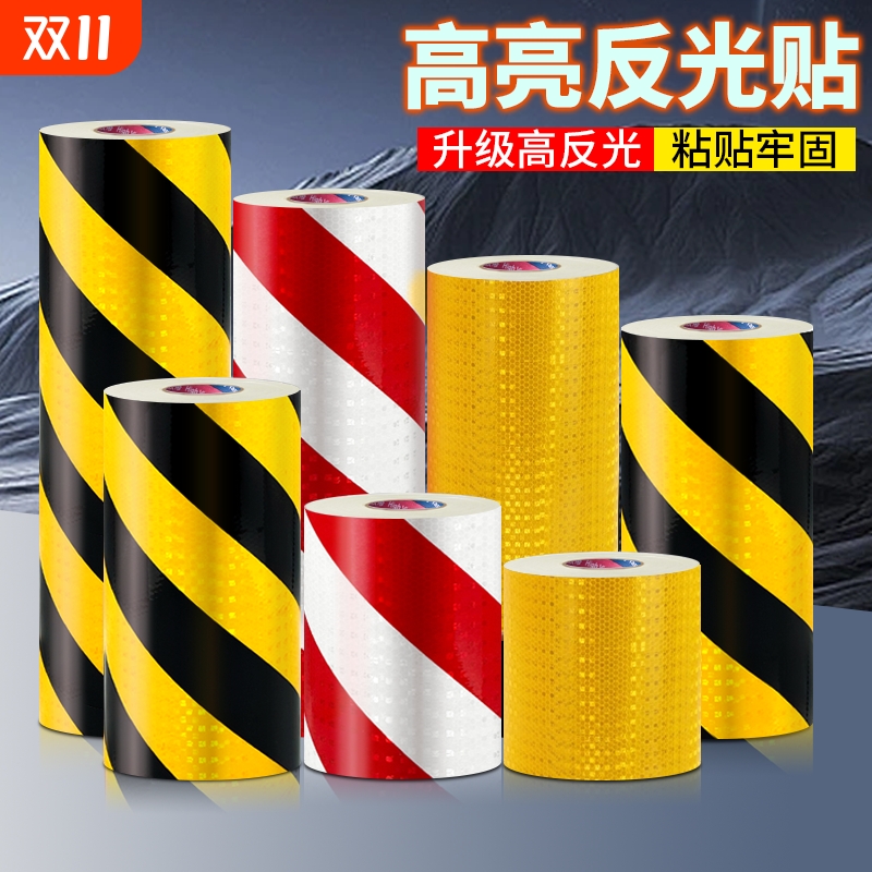 高亮黑黄斜纹反光膜反光贴警示胶带晶格高粘加厚耐磨警戒标识护栏路桩