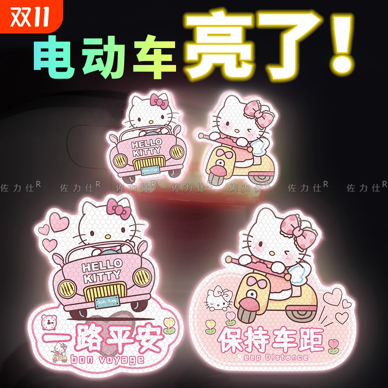 凯蒂猫电动车装饰夜间反光贴安全警示摩托汽车个性车贴纸划痕遮挡