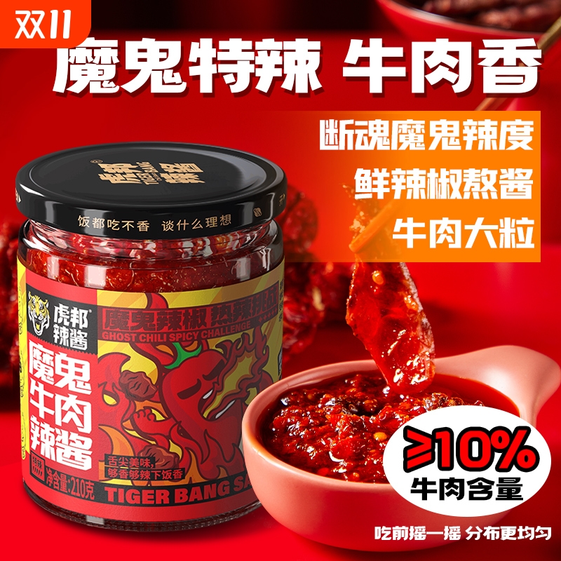 虎邦魔鬼牛肉辣椒酱210g特辣爆辣