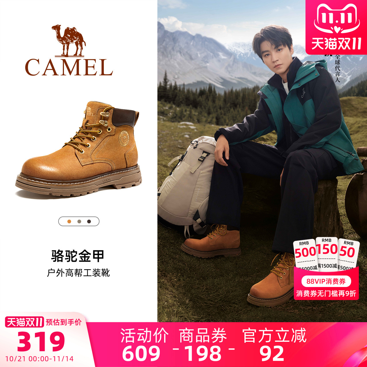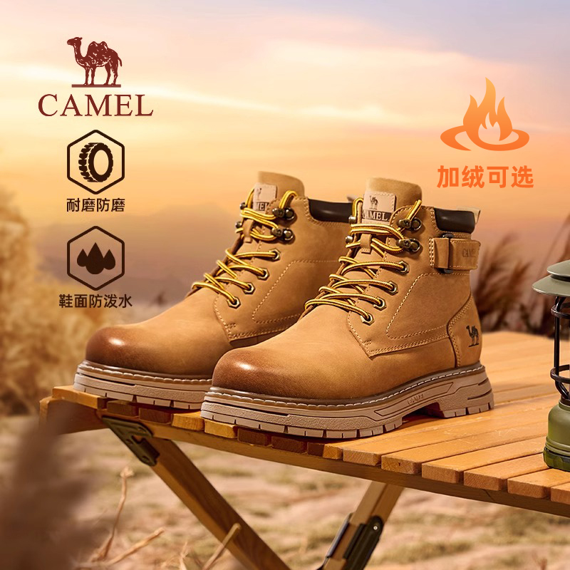 【骆驼金甲】男鞋2025秋季新款大黄靴防泼水增高户外高帮工装靴男